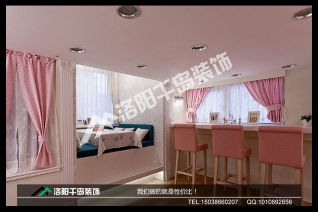 客廳不大,卻是一個(gè)小女生喜歡的風(fēng)格,粉色、碎花,加上整體白色的基調(diào),讓設(shè)計(jì)師幫你圓個(gè)公主夢(mèng)吧。