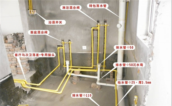 水管開槽,一般是先彈線,再開槽。管路開槽按要求必須是平行線與垂直線(如有水電施工圖的對照施工圖更好)。須平行走線的管路一律控制在60-90厘米高(從地面算起),有水龍頭的管路必須垂直。深度控制在4厘米。線槽開好后施工負責(zé)人記好開槽管路尺寸、位置。方便以后潔具安裝時知道管路的位置。
