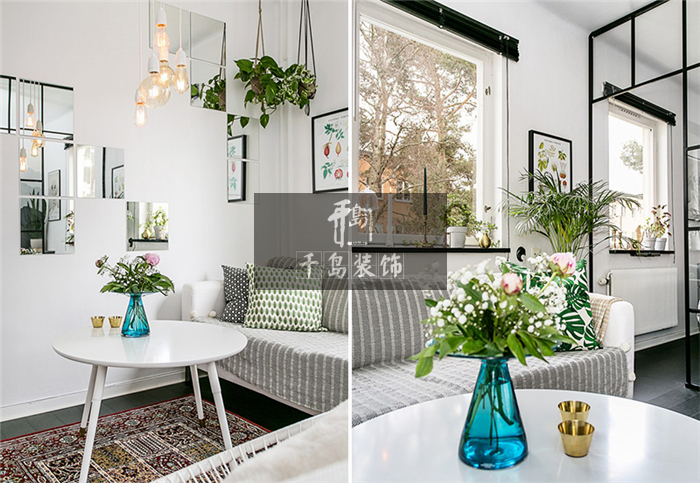 若增添太多的工業(yè)元素,稍不注意就會打破整個家居環(huán)境的平衡,這時候就需要能夠提亮北歐風格主體的物件了。上面案例中就是運用了大量的綠植元素來調(diào)和不同風格的家具家飾,使之成為一體。作為北歐風家居的重要元素,它無疑是平衡混搭原則的絕佳利器。