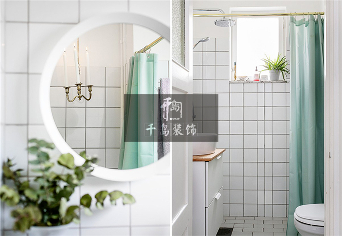 浴室之中采用了為常見的鋪磚處理,白色的格紋磚是北歐風家居常見的元素之一。在大空間上保持北歐風格占據(jù)主體地位,但細節(jié)之處卻利用金屬元素修飾。依舊是空間上相互照應(yīng)的手法,浴簾橫桿豐富頂部空間,金屬壁燈裝點墻面留白,對比之間輕松打造出混搭家居。