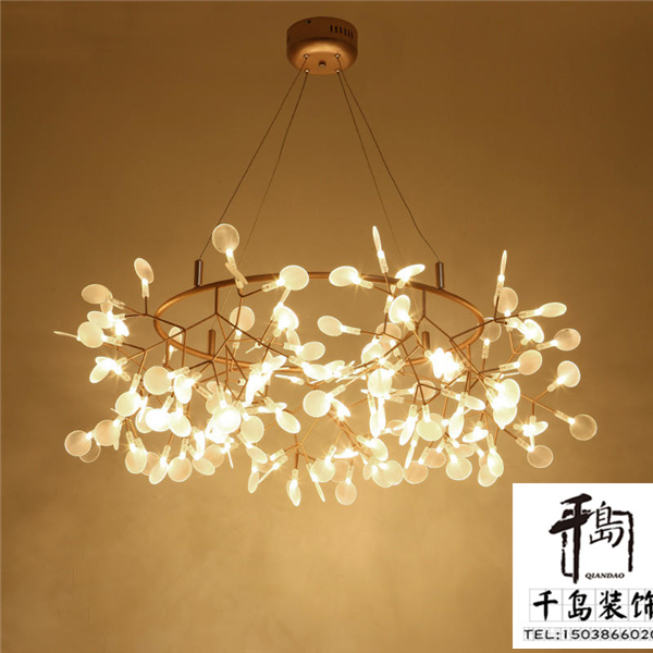 北歐現(xiàn)代風(fēng)格的LED燈具設(shè)置了若干 “白色葉子/鏡片”,像一個(gè)分叉的樹(shù)枝,其形態(tài)兼具技術(shù)性和自然美感。在夜晚開(kāi)燈的時(shí)候猶如一群螢火蟲(chóng)飛舞,浪漫而且溫馨。