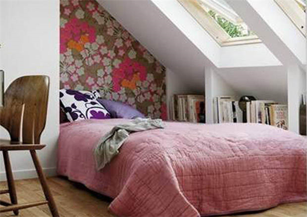 在斜房頂間的閣樓裝修上,就可以在矮的那邊就可以放上榻榻米,完全就不用怕頭碰著上方,在加上一個溫暖的壁燈,不僅能夠照明還能夠作為一個很好的裝飾。