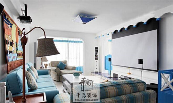 提起地中海風格,首先便想到的是滿目的藍色,淺淺的藍,寂靜的藍,各種色系的藍,這就時候地中海的風格的靈魂??蛷d大面積使用淺色系的藍,家具,墻壁都是藍色,清新之氣撲面而來。相信如果你家客廳是這樣的,你肯定會賴在客廳不挪窩了。