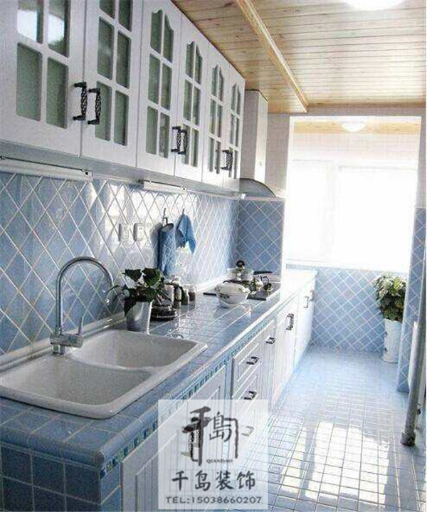 廚房與地中風格碰撞,那效果絕對是意料不到的驚人。充滿煙火氣息的地方與自由舒適的地中海風格結(jié)合,從此做飯不在無聊,只愿待在這么一方空間。