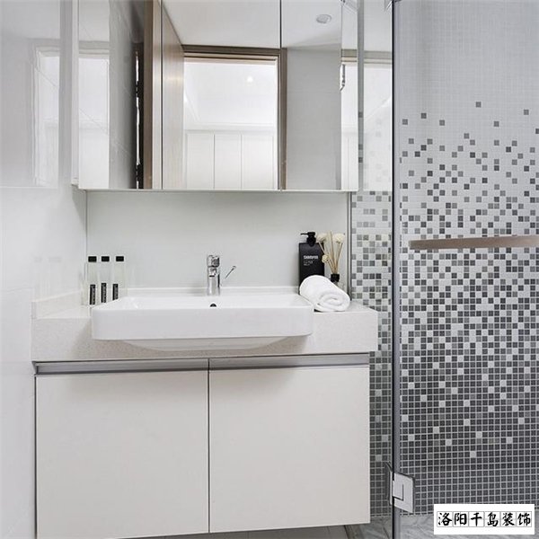 樣板間衛(wèi)生間面積小,整體格局把握的非常好,利用玻璃門做了干濕分離的設計,這樣能夠很好的保持衛(wèi)生間的干爽,方便日常衛(wèi)生的打理,淋浴房里面采用了這種拼色的瓷磚,深淺 不一的格調,顯得非常時尚有層次感。