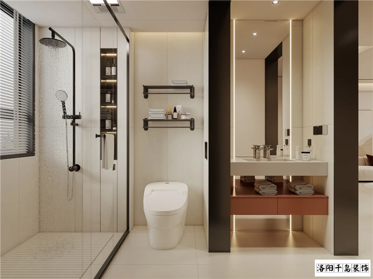 衛(wèi)生間采用干濕分離的設(shè)計,懸空浴浴室柜,墻排下水,智能馬桶,獨(dú)立淋浴房!