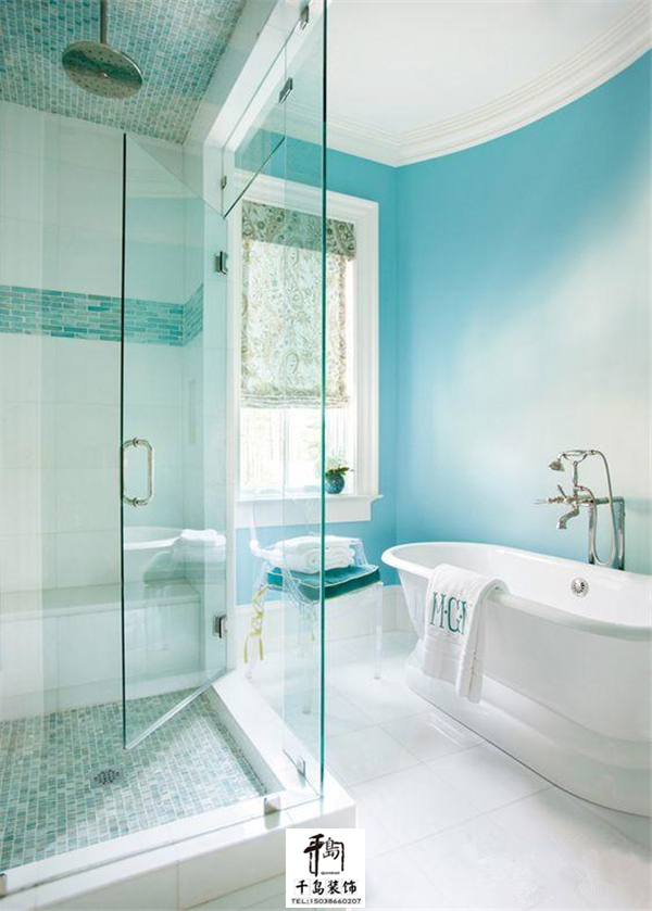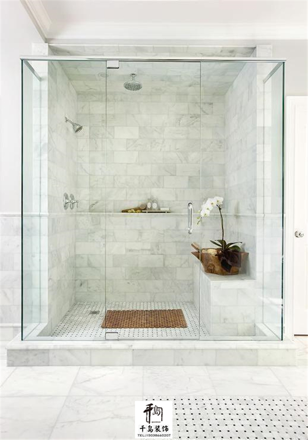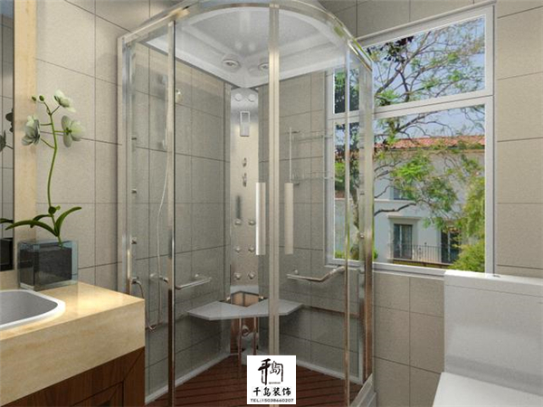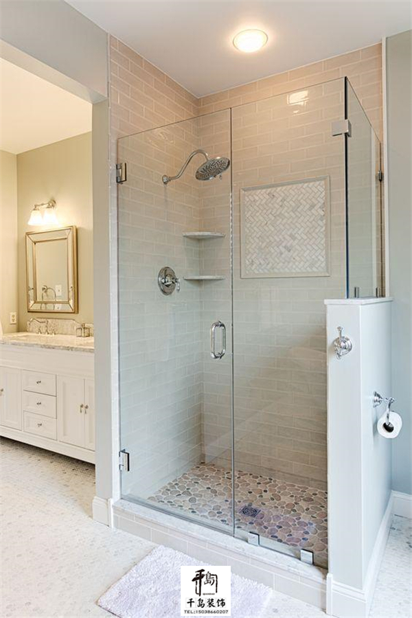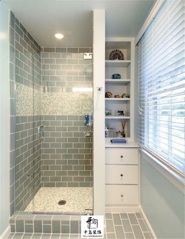 或者直接把衛(wèi)生間的一角利用玻璃劃分成浴室空間,簡單明了,只要做好擋水條的防水試驗就OK了。