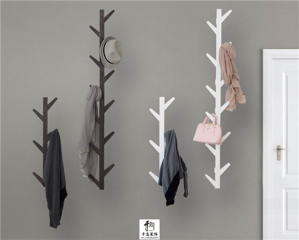 樹枝款式的衣帽架很時尚,混搭一件不同高矮和色調(diào)的組合在一起也是別有一番情調(diào)。它的每一個枝丫都能隨手掛上衣帽包包,實用性超強。還有橫向的實木衣帽掛鉤,上面的小平臺可以放一些盆栽雜志,它更像裝飾品,裝點效果非常好。