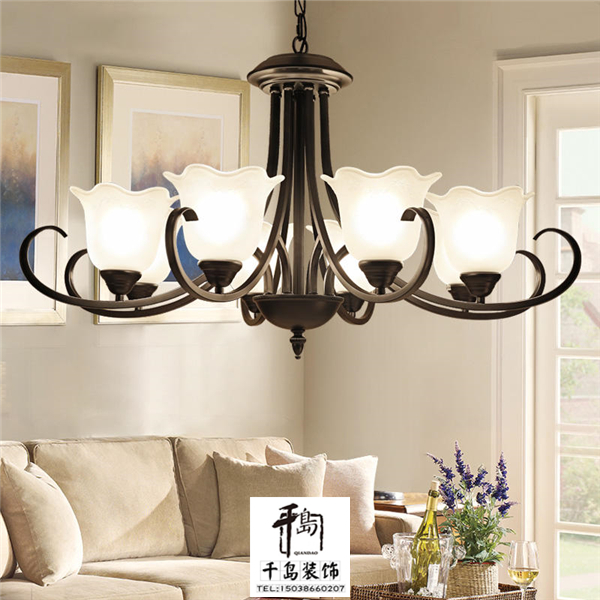 燈飾是家居生活中重要的裝飾,在現(xiàn)代的裝修中,燈具已經(jīng)不僅限于照明了,它更是一個非常重要的飾品,在帶給我們光明的同時也是調(diào)節(jié)氛圍的重要的東西,美式風(fēng)格的吊燈都是以鐵藝為主的居多,復(fù)古優(yōu)雅的鐵藝花紋搭配花朵般的燈罩,帶給你雅致、自然、文藝的感受。