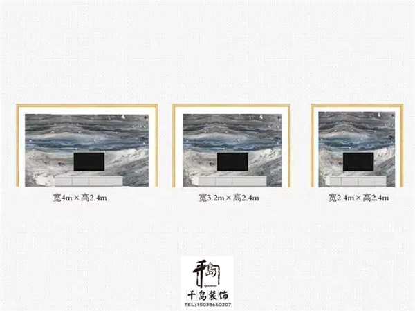在設(shè)計背景墻的時候我們一定要考慮好背景墻的大小,主要是根據(jù)背景前的主體決定的,例如:電視。大理石尺寸方面的話呢通常是用80㎝規(guī)格石板拼裝,這樣比較容易運輸以及安裝,不過也可以選用一個整版。