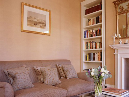 由于半開放式的空間需要一點空間區(qū)域的劃分,所以陽臺和的壁爐中間又有了一段凹陷的空間,客廳的背景墻上裝飾是必不可少的,雖然這種凹陷的空間并不起眼,但是如果配上這樣美麗的畫作的話,不起眼也能成為客廳的一個風景點。