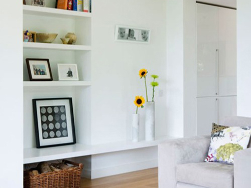 不得不說,室內的凹處用來作收納,是一個好的選擇,不管上面能放,和地板隔開的地方都同樣能放,在上層的顯眼位置就用來放些裝飾品,讓凹陷的空間也散發(fā)出一絲藝術的光芒。